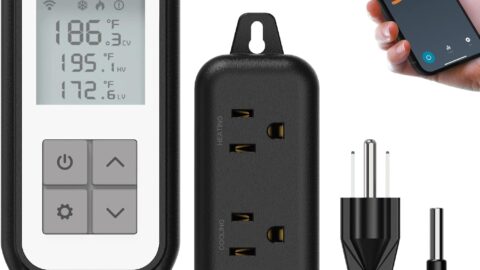 MOES Smart WiFi Cooling Heating Thermostat Outlet, Tuya Digital Temperature Controller Sensor Plug for Reptile Fermenter Brewing Breeding Heat Mat, Smart Life Remote Control, -22-221℉,10A 1250W