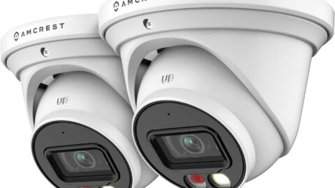 Amcrest 2-Pack AI Turret IP PoE Camera w/ 49ft Nightvision, Security IP Camera Outdoor, Built-in Microphone, Human & Vehicle Detection, Active Deterrent,129° FOV, 5MP@20fps 2PACK-IP5M-T1277EW-AI