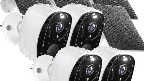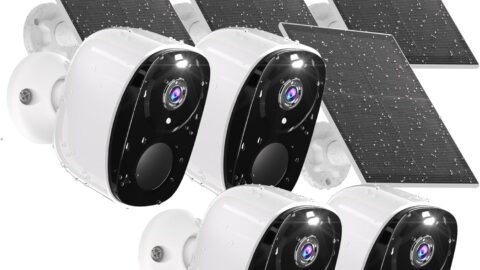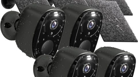 4PCs 2K Security Camera Wireless Outdoor, Solar Camera for Home Security, Battery Powered WiFi Security Cameras with Color Night Vision, AI Motion Detection, 2-Way Audio, IP65, SD/Cloud, Works Alexa