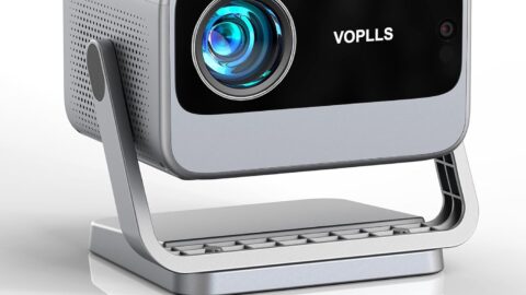 [Netflix Officially & AI Auto Focus] VOPLLS 4K Projector with WiFi and Bluetooth, 3D DoIby Audio & Auto Keystone Video Projector, 600 ANSI Outdoor Movie Projector, 50% Zoom, MAX 300”Display(Grey)