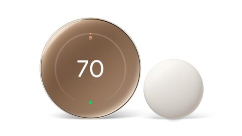 Google Nest Learning Thermostat (4th Gen) with Nest Temperature Sensor (2nd Gen) – Energy Saving Smart Thermostat with Adaptive Eco – Works with Alexa and Google Home App – Polished Gold