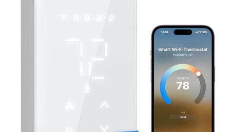 WiFi Thermostat for House with C-Wire Adapter, Programmable Smart Thermostat Compatible with Alexa and Google Assistant, 7day/4period Programmable, Energy Saving, Large Screen Size 4.3″