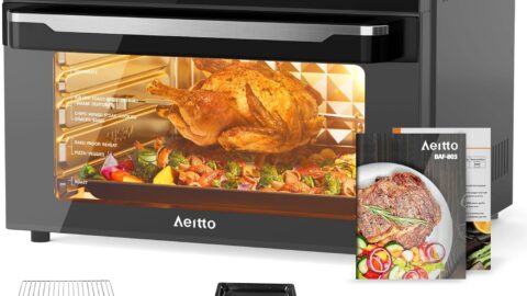 Aeitto 32QT Smart Air Fryer, with Rotisserie and Full Accessories, 19-In-1 Digital Airfryer Toaster Oven Combo with Dehydrator, Convection Oven Countertop, Fit 13″ Pizza, 9pcs Toast, 1800w (Dark Grey)
