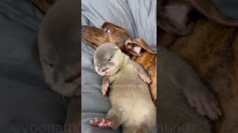 Baby otter try to swim for the 1st time🦦💦 #yoonathetigerdachshund #dog #puppy #shorts
