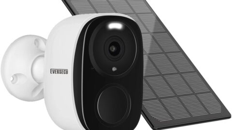 EVERSECU 2K 3MP Solar-Powered Wireless Security Camera Support Pairing Via Bluetooth, Outdoor WiFi Home CCTV Bullet Camera, Spotlight, PIR Motion Detection, 2-Way Audio, Night Vision, Work with Alexa