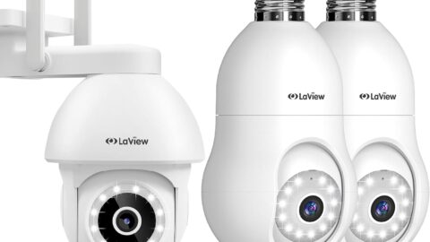 LaView 5MP Security Camera, Wireless and Wired 360° 3K Security Camera Outdoor Indoor Combination, Full Color Day and Night, AI Motion Detection, Voice Alarm,Compatible with Alexa(3 Packs)