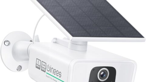 winees 5MP Solar Security Camera Wireless Outdoor, Continuous Powered, 2.4/5GHz Wi-Fi6 Camera with 1000lm Spotlight, Motion Detection, Siren, SD Card/Cloud Storage, 2-Way Talk, Compatible with Alexa