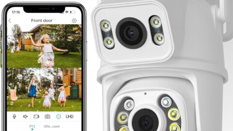 xmartO 2K HD Wireless PTZ Home Security Camera Outdoor/Indoor with Flood Lights (AI Auto-Tracking-Target, 24/7 Surveillance, DY3034)