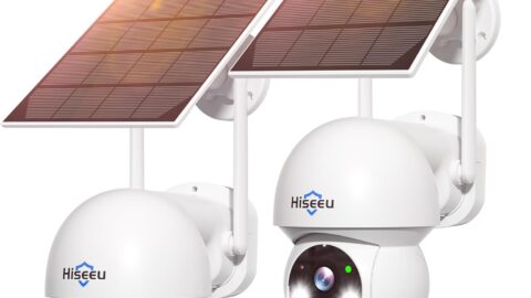 Hiseeu Solar Security Camera, 2PCS 4MP Wireless WiFi Camera Outdoor, PTZ 360° View, PIR Motion Detection, Color Night Vision, IP66, 2-Way Audio, 2.4G WiFi, No Monthly Fee
