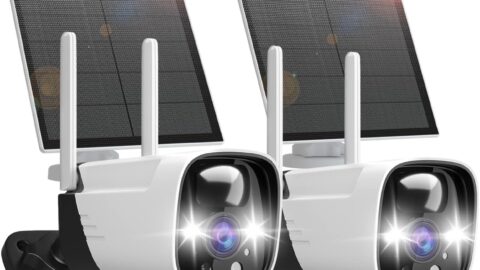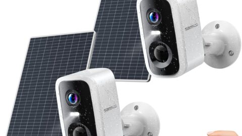 SANSCO Solar Security Cameras Wireless Outdoor 2 Pack, 2K Battery Operated WiFi Indoor Camera for Home Surveillance- PIR/AI Motion Detection, Waterproof, Color Night Vision, 2-Way Talk