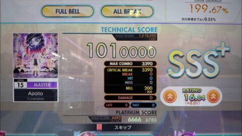 【オンゲキ 手元】 Apollo(MASTER) 1010000 理論値