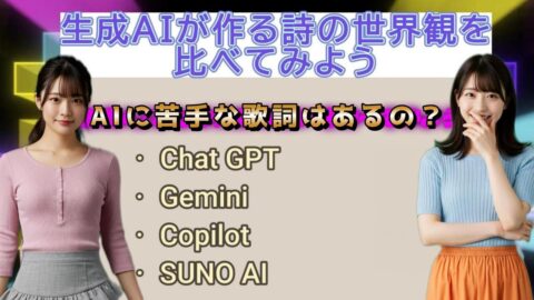 【SUNO AI】向け、AI別作詞比較 Chat GPT, Gemini, Copilot, SUNO での比較 #suno #chatgpt #gemini #Copilot #ai生成 #JPOP