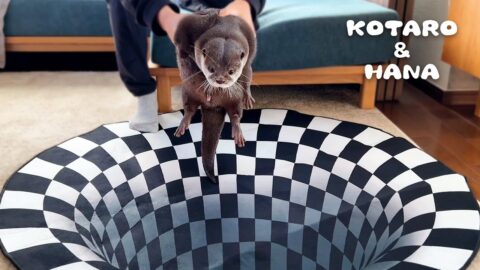 カワウソにトリックアートのドッキリをしたらどうなるのか!? Can Otters See Optical Illusions? Indoor Sinkhole