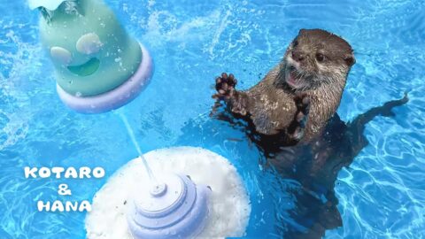 カワウソが空飛ぶスプリンクラーに大興奮でまさかの展開に! Otters React to Their First Sprinkler!