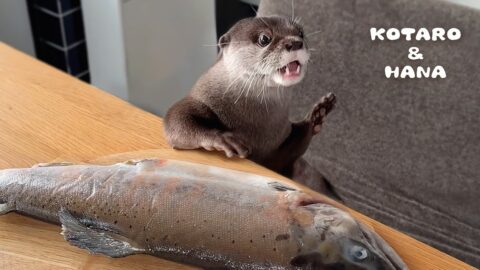 カワウソに巨大ヤマメをあげたら大変なことに! Otter Goes Piranha Mode Over Large Salmon!