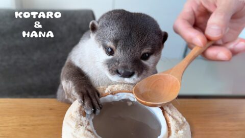 カワウソに初めてココナッツをあげたらこうなった Otters Try Coconut for the First Time