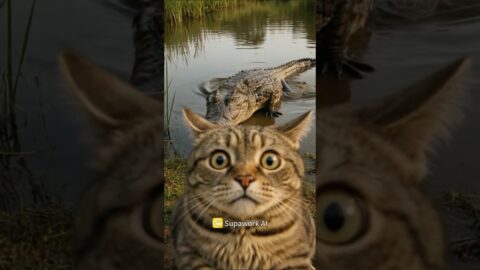 Maybe I shouldn’t step into this swamp….. [Kitten Africa Trip vlog-2]#ai #cat #vlog #animals